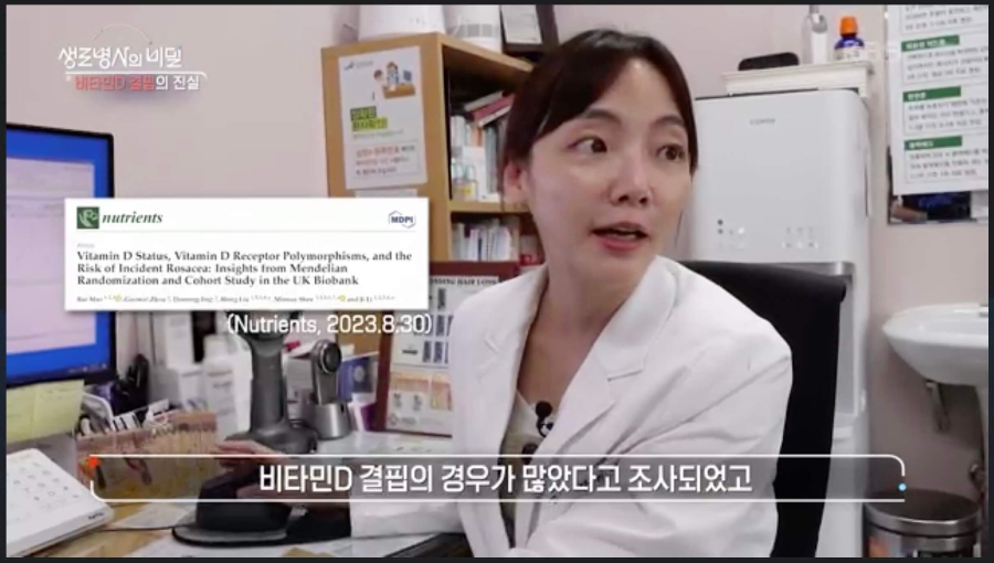 구진과 농포가 있는 주사피부염 환자의 경우 비타민D가 결핍되어 있는 경우가 많았다는 연구가 있었습니다.