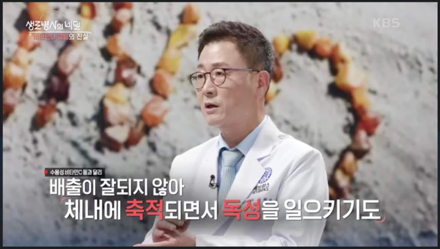생로병사의 비밀 | 비타민D 과다 복용의 부작용? “ 신장 결석, 담석, 근육 마비 발생 위험 높일 수도... ” Copyright ⓒ KBS. All rights reserved. 무단 전재, 재배포 및 이용(AI 학습 포함) 금지