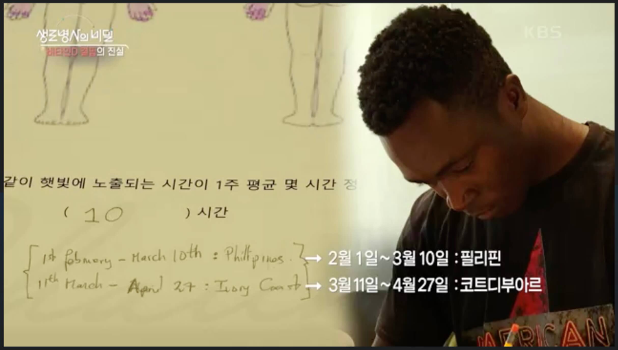 3개월 이내에 비타민D 보충제를 먹지 않은 백인 2명, 흑인 2명, 한국인 2명을 대상으로 비타민D 혈중농도를 측정해 보는 실험을 해보았는데요. 햇빛 노출 부위나 면적 등은 비슷한 조건이었습니다. 실험 결과 백인이 비타민D 혈중농도가 가장 높았고 그다음이 한국인, 흑인 순이었습니다. 예외적으로 흑인 한 명이 비타민D 수치가 30ng/ml 이상으로 높았는데 이 사람은 최근 필리핀과 코트디부아르로 여행을 다녀왔다고 하네요.