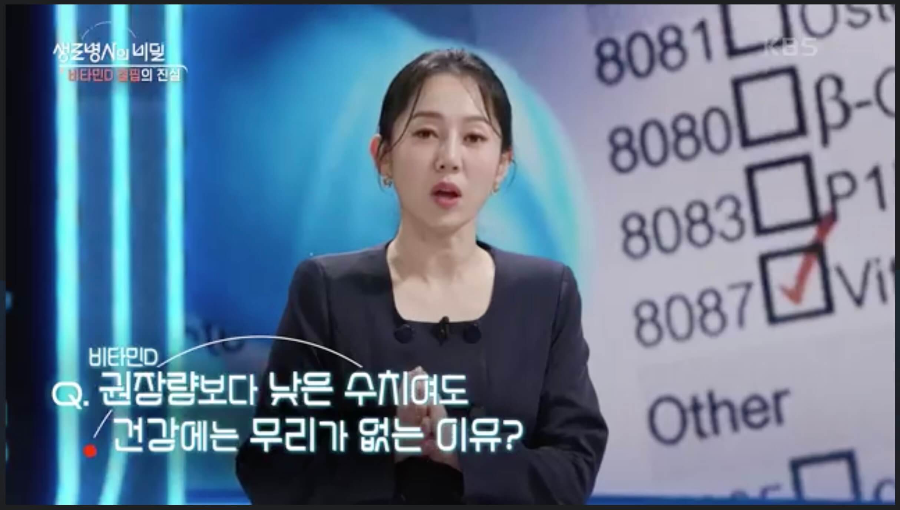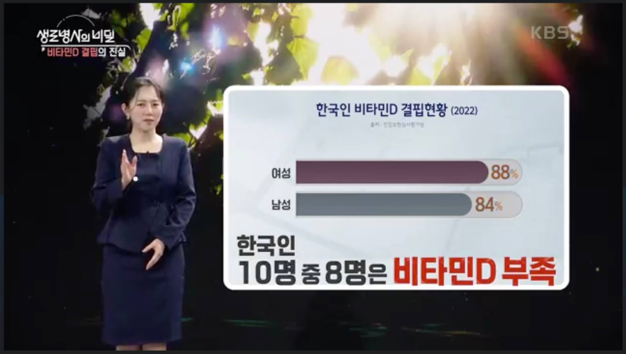 생로병사의 비밀 | 80% 이상의 한국인이 부족하다는 비타민D, 부족의 기준은? Copyright ⓒ KBS. All rights reserved. 무단 전재, 재배포 및 이용(AI 학습 포함) 금지