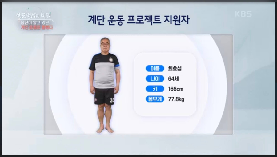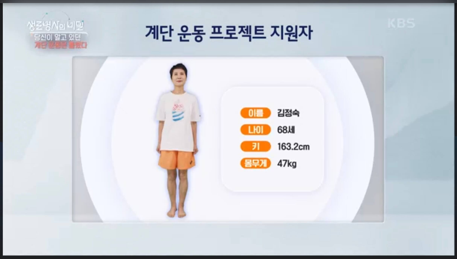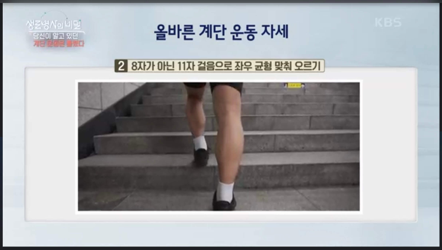 생로병사의 비밀 | 무릎 통증 걱정 없는 계단 운동에 도전한다! Copyright ⓒ KBS. All rights reserved. 무단 전재, 재배포 및 이용(AI 학습 포함) 금지