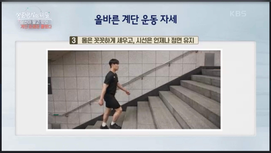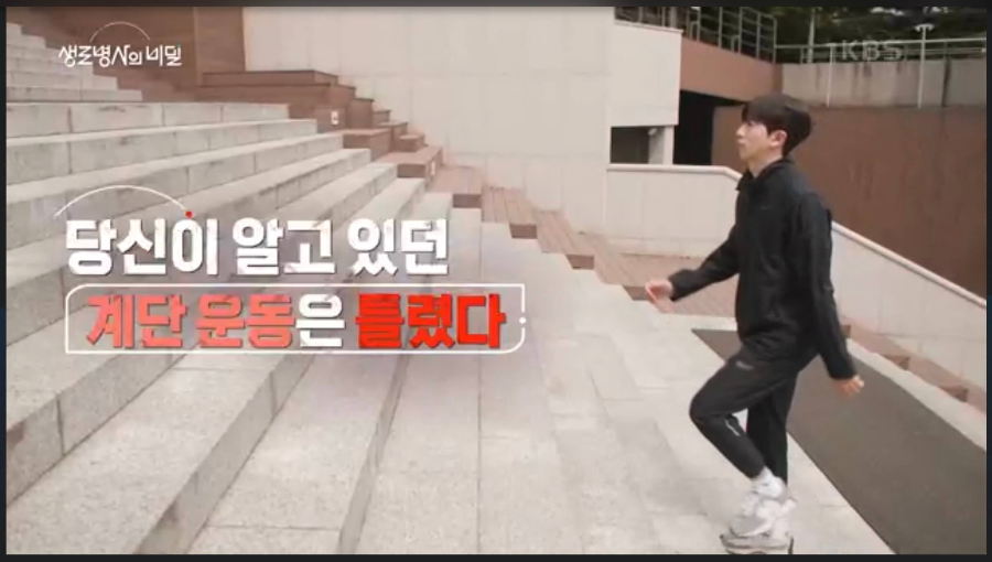 생로병사의 비밀 | 계단 운동의 새로운 제안, 계단 내려가기 Copyright ⓒ KBS. All rights reserved. 무단 전재, 재배포 및 이용(AI 학습 포함) 금지