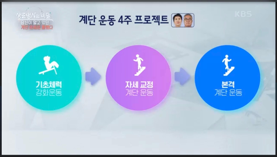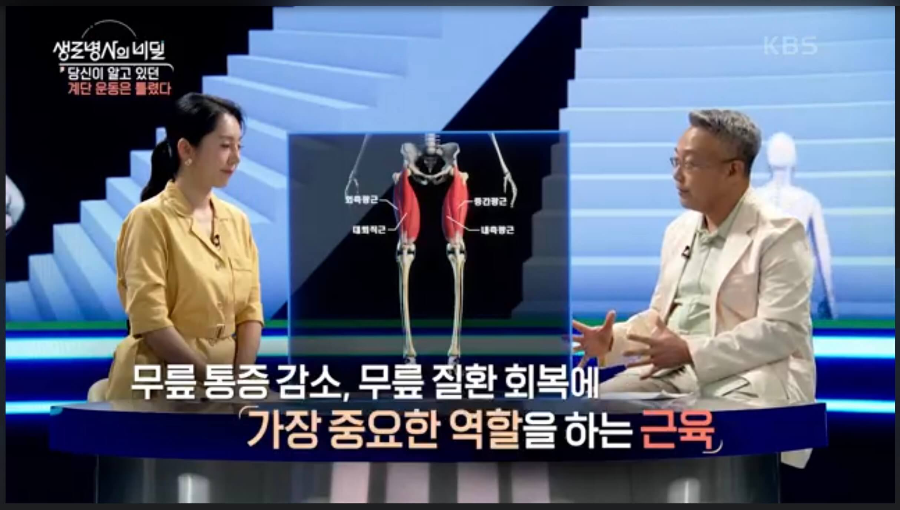 생로병사의 비밀 | 무릎 통증 걱정 없는 계단 운동에 도전한다! Copyright ⓒ KBS. All rights reserved. 무단 전재, 재배포 및 이용(AI 학습 포함) 금지