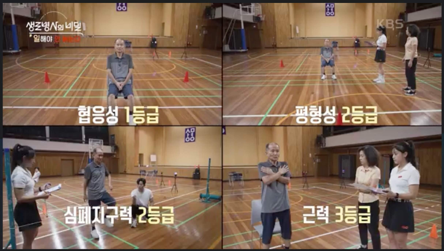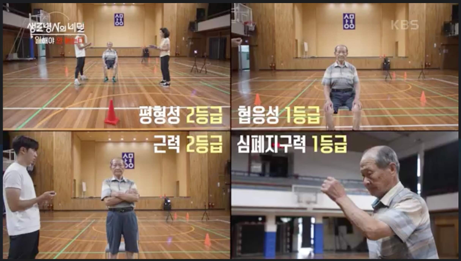 홍응표 씨는 노쇠측정평가에서 보행 속도를 제외한 나머지 4개 항목 모두 노쇠가 아니라고 측정되었다. 이어진 기초체력평가에서도 평형성, 협응성, 근력, 심폐지구력 모두 3등급 이상을 받아서 건강한 체력을 인증했다.