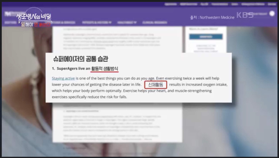 생로병사의 비밀 | 여전히 팔팔한 현역! 백세 장수인들의 건강 비결은? Copyright ⓒ KBS. All rights reserved. 무단 전재, 재배포 및 이용(AI 학습 포함) 금지
