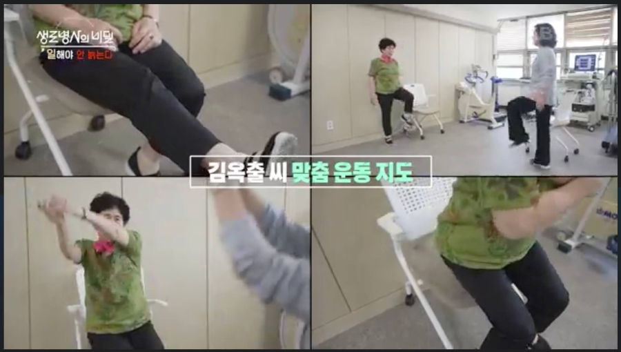 두 지원자에게 맞춤 운동 지도를 하였습니다. 김옥출 씨에게는 일상에서 신체활동을 늘리고 근력과 균형감을 키우는 운동을 할 것을 권장했습니다. 박현순 씨에게는 틈틈이 근력을 보완할 수 있는 운동을 하도록 지도했습니다.
