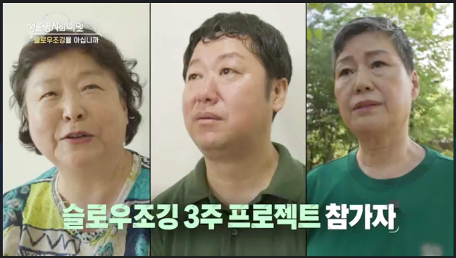 생로병사의 비밀 | <슬로우조깅 3주 프로젝트>, 3주 이후의 결과는? “ 몸에는 무리가 안 가는 것 같아요! ” Copyright ⓒ KBS. All rights reserved. 무단 전재, 재배포 및 이용(AI 학습 포함) 금지