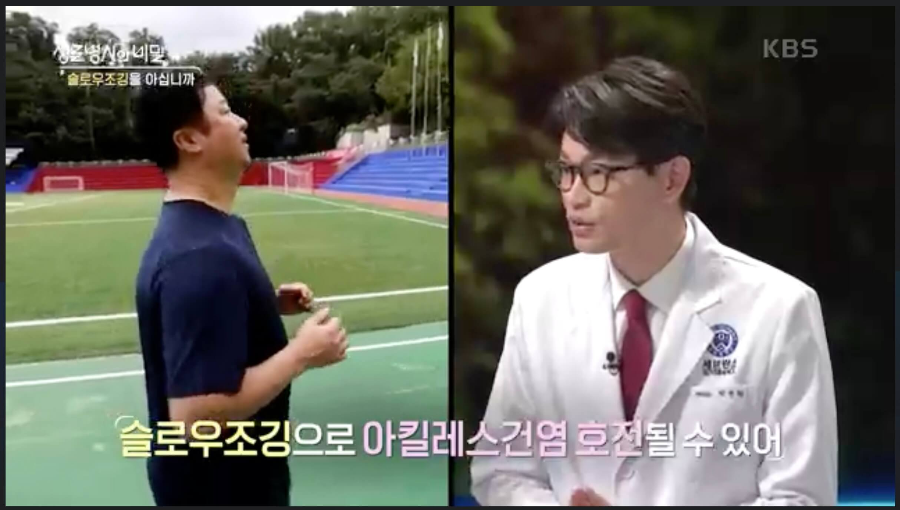슬로우조깅으로 아킬레스건염이 호전될 수 있습니다. 슬로우조깅은 앞꿈치로 착지하기 때문에 종아리근육이 거의 움직여지지 않은 상태에서 힘만 꽉 쥐어지는 상태가 되는데 그렇게 되면 종아리 근육이 강화되어 아킬레스건염이 좋아집니다. 무릎관절도 거의 움직임이 없이 살짝 디뎌지는 상황이기 때문에 무릎 병력이나 퇴행성 관절염이 있어도 할 수 있는 운동이 슬로우조깅이 되겠습니다.