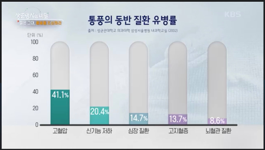 생로병사의 비밀 | 통증보다 무서운 합병증, 젊은 통풍의 주원인은? Copyright ⓒ KBS. All rights reserved. 무단 전재, 재배포 및 이용(AI 학습 포함) 금지