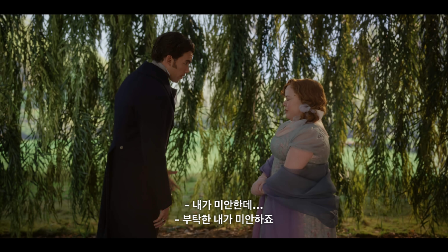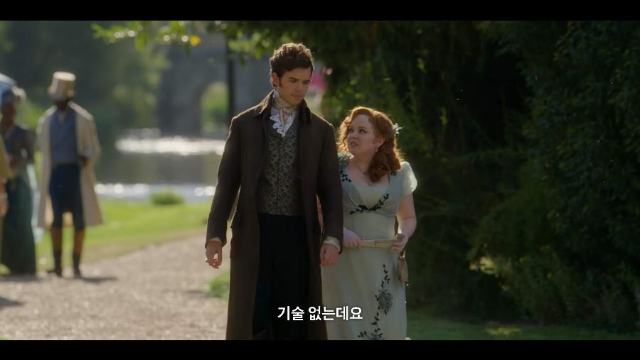 사랑했던 여인인 마리나 톰프스가 다른 남자의 아이를 임신했다는 사실을 알고 충격을 받았던 콜린 브리저튼. 멀리 여행을 떠났다가 돌아와 가족들을 만납니다. 이 모습을 멀리서 지켜보는 페넬로페 페더링턴. 페넬로페는 아직 콜린을 향한 마음을 접지 못하고 미련이 있어 보입니다.