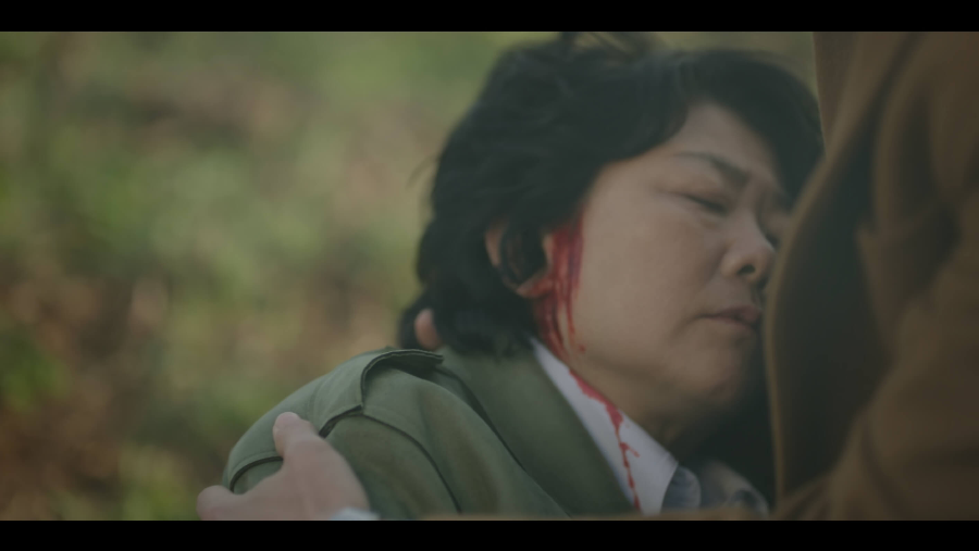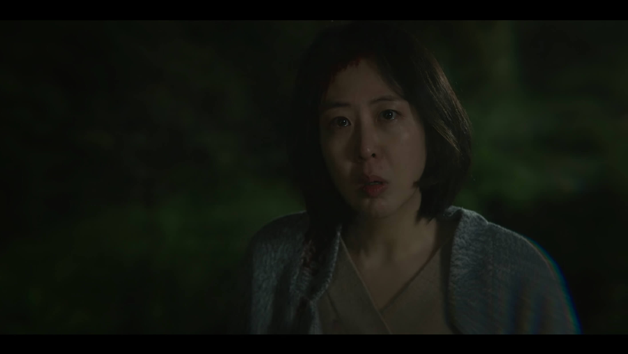 미진과 몸싸움을 벌이는 공은심. 미진의 목을 조르다가 실패하자 가져온 도끼로 그녀를 토막 내려고 하던 그때! 그녀에게 환각이 보이기 시작합니다. 마약 때문인지 아니면 미진이 이모와 비슷하게 생겨서인지 갑자기 임순의 모습이 보이는 공은심