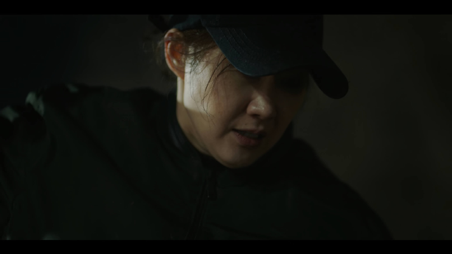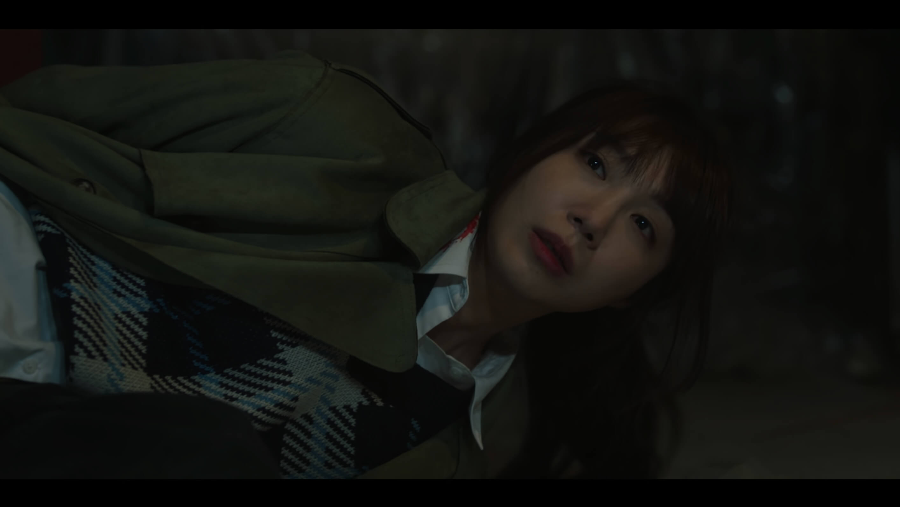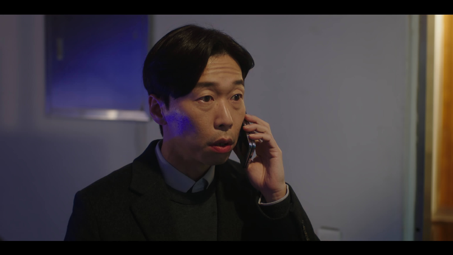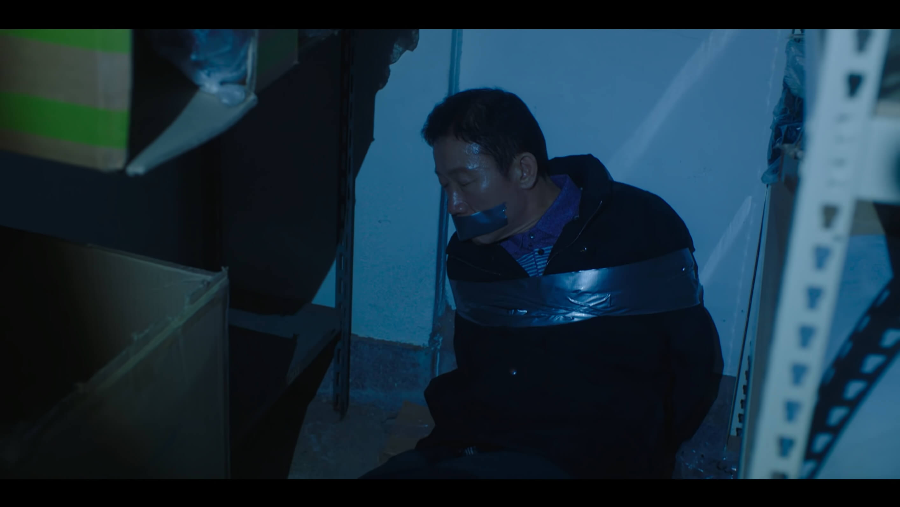 미진은 이때를 틈타 갖고 있던 칼로 묶인 밧줄을 끊어내고 창문을 넘어 탈출합니다. 미진을 잡으려고 연쇄살인범이 뒤를 쫓아갑니다. 계검사님은 뭐 하고 있을까요?