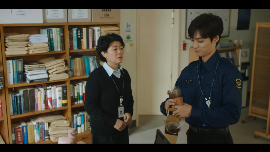 임사무원의 말에 매번 위로받고 있는 고원. 임순의 매력에 빠지기 시작한 고원은 좀 더 사회복무요원으로 여기에서 일해보겠다고 결심합니다.