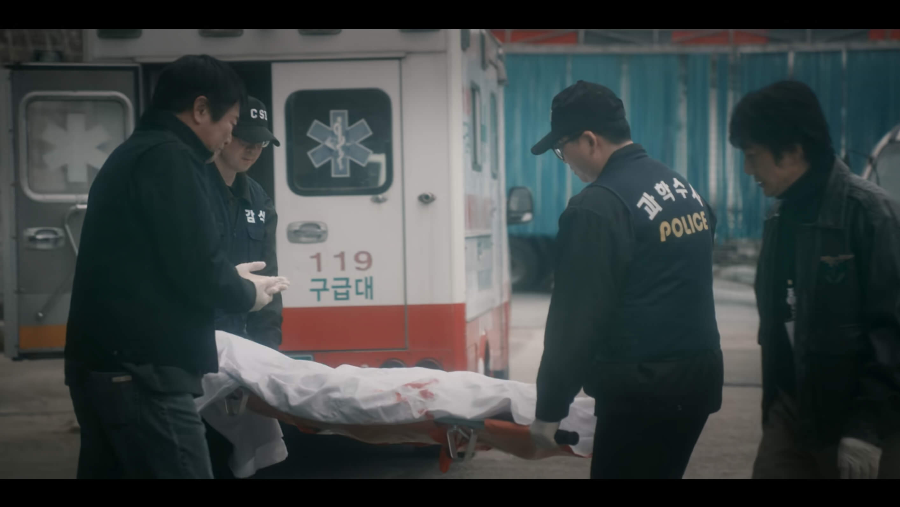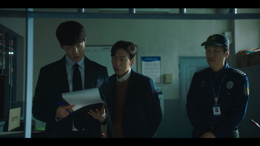 테러범 지동건은 갑자기 구토를 하며 의무실로 가게 되고 이후 사망하게 됩니다. 지동건이 사망했다는 소식을 접한 계검사와 수사관은 지동건의 통화목록을 살펴보며 수사를 합니다. 사건 터지고 지동건이 배후세력에게 손절당했다고 생각하는 계검사. 그런데 배후세력이 어떻게 그렇게 빨리 그걸 알았지? 의아해합니다.