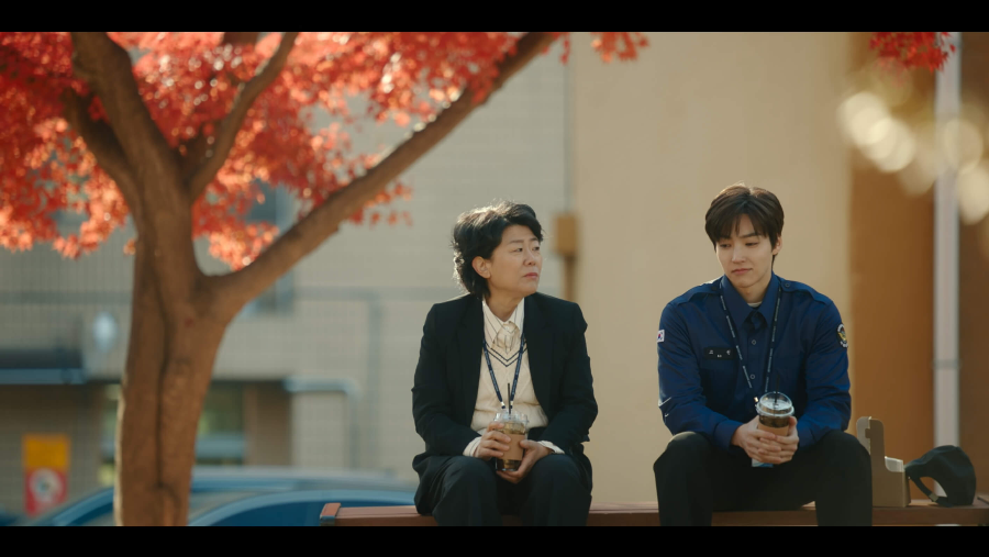임사무원이 앉아있는 벤치로 아아를 사들고 온 전직 아이돌 고원. 이 둘은 여기에서 솔직한 대화를 나눕니다.