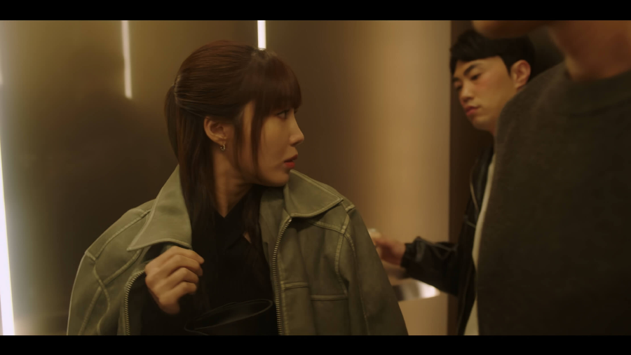 클럽을 나가는 길. 엘리베이터에서 미진을 흘끔흘끔 쳐다보는 뒤에 있는 남자. 신경 쓰인 지웅은 미진에게 자신의 점퍼를 벗어줍니다. 묘한 기류의 두 사람.