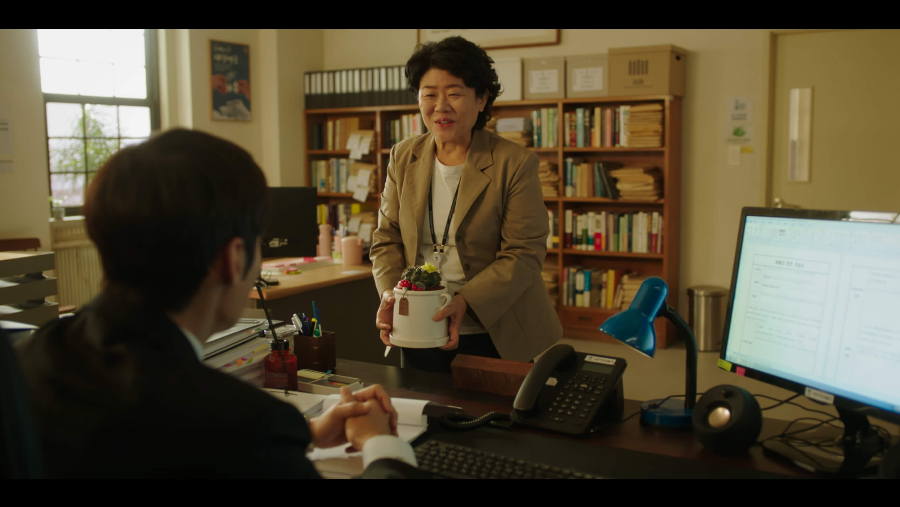 선인장을 살려 '단무지'라는 이름을 지어준 임순은 그것을 원래 주인이었던 계검사에게 돌려줍니다. 그러나 아직 두 사람 사이에는 어색한 기류가 흐릅니다. 그냥 때려치우자 결심하고 사직서를 쓰고 있는 임순. 계검사는 이전에 임순에게 너무 심하게 말한 것 같아 찝찝하고 사과를 하려 합니다. 비 맞으며 뛰어가는 임순에게 우산을 씌워주며 다가간 계검사