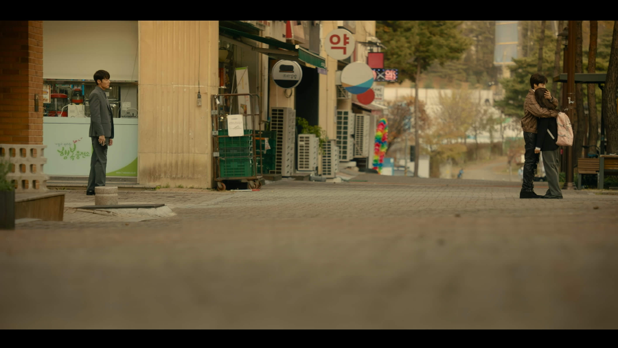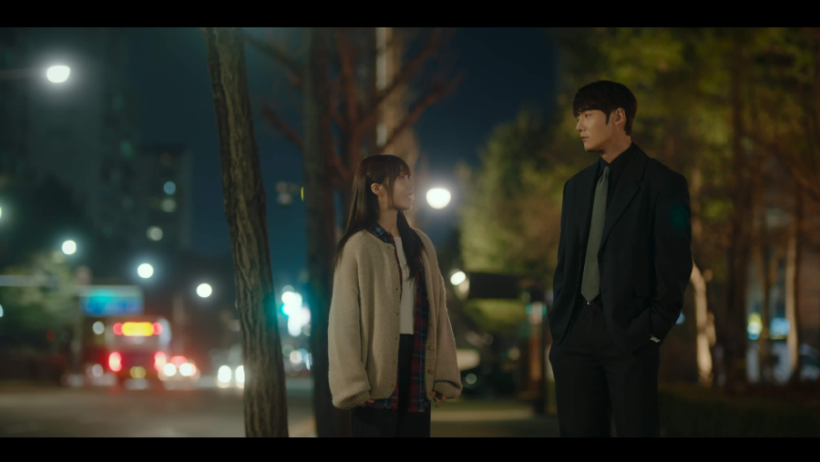 혼자 걸어가면서 혼잣말로 계검사에게 못했던 말 다하는 미진. 재수 없는데 또 틀린 말은 안 하는 계검사가 서운해서 길바닥에 떨어진 깡통을 찼는데 앞에 있던 남자의 머리에 맞았습니다. 이때 뒤에서 따라 걷던 지웅이 미진보다 먼저 나서서 사과를 합니다. 남자를 보내고 미진과 다시 둘이 마주한 지웅. 조금 더 솔직한 대화를 이어갑니다.