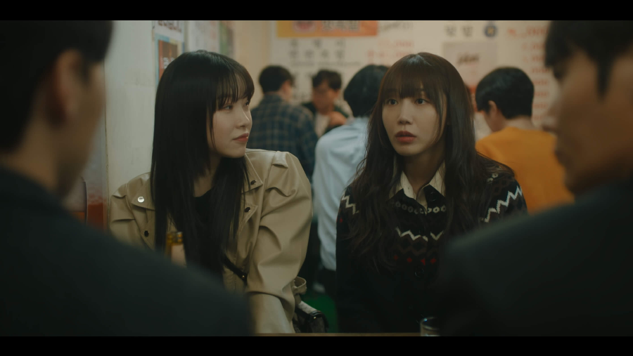 친구인 가영과 불족발을 먹으러 와서 우연히 수사관과 계검사와 같이 합석하게 된 미진. 아직 계검사와 어색함이 풀리지 않은 미진은 기본 제공된 안주를 떨어뜨리고 지웅과 함께 이를 줍다가 서로 손끝이 닿자 묘한 기분을 느끼게 됩니다. 가영의 이상형이 고원이라고 하자 수사관은 낮에 있었던 일이 떠오르며 흥분을 해서 미진에게 고원이 고백을 한다면 사귈 거냐고 묻습니다. 그런데 이때 끼어드는 계검사