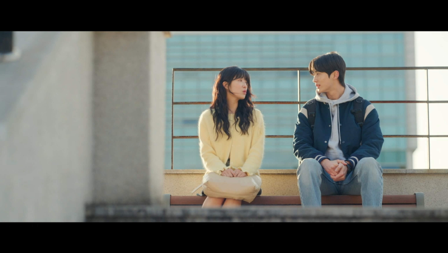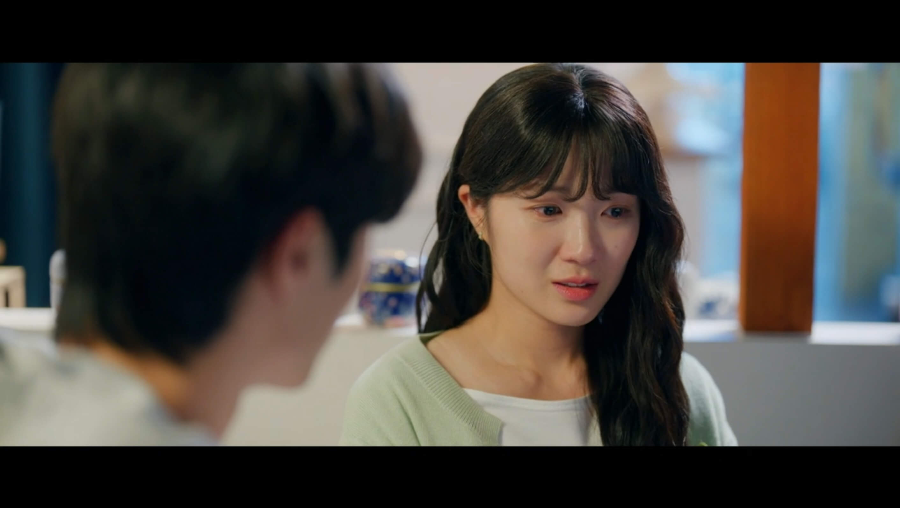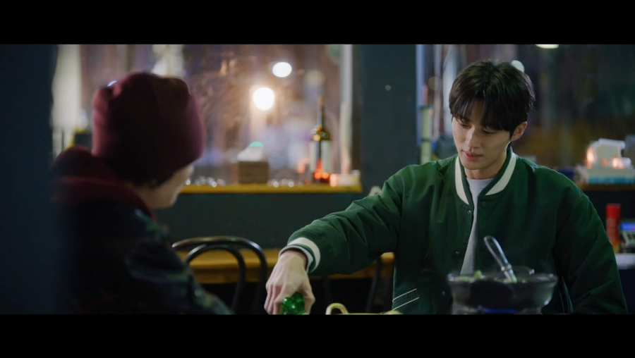 데이트 끝나고 헤어지려니 아쉬운 선재와 솔. 같이 가게에서 시간을 보내다가 바다 보러 가자고 약속하고 나서 선재 어깨에 기대어 잠이 드는 솔.