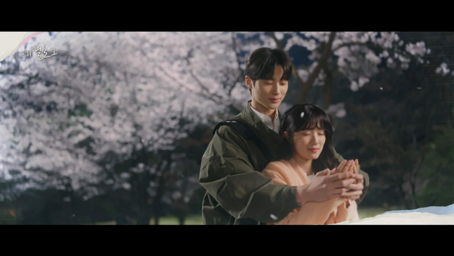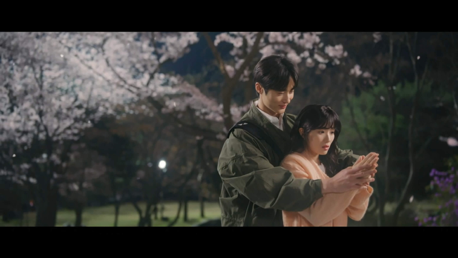 커플 핸드폰 고리를 하고 좋아하는 두 사람. 떨어지는 벚꽃 잎 잡으면 소원이 이루어진다고 해서 열심히 잡고 있는 솔이. 잘 안 잡히자 선재가 뒤에서 도와줍니다. 눈감고 각자 마음속으로 소원을 빕니다. 무슨 소원 빌었는지는 비밀.