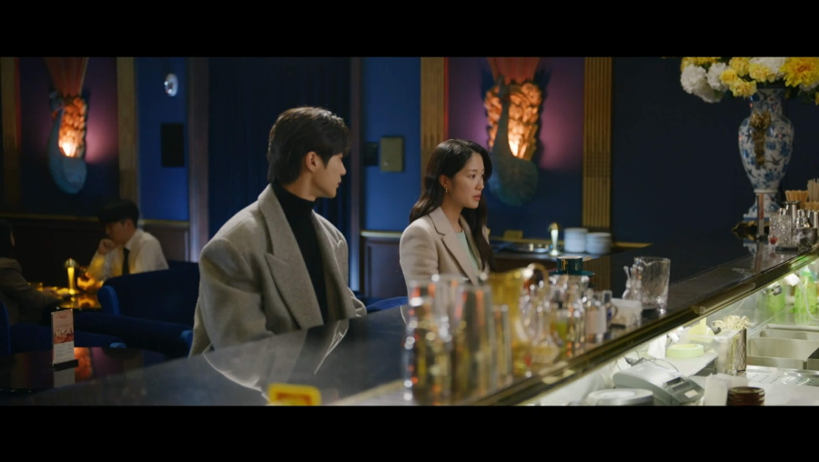 시나리오에 감동한 선재는 영화사 쪽에 러브콜을 보냅니다. 그러나 '알잘딱깔센' 사직서 주인인 솔이를 보자 영화 출연 거절을 하려고 했던 선재. 그런데 솔이 먼저 선재를 거부합니다. 아주 단호히ㅎㅎ 이에 선재는 마음이 상하고 솔이 회사 앞으로 찾아와 잠깐 얘기 좀 하자고 합니다. 솔이 자기는 할 얘기 없다고 하자 선재는 '알잘딱깔센' 사직서로 협박? 하여 솔이랑 호텔바에 와서 이야기를 합니다. 나를 반대하는 이유가 뭐냐고 따지는 선재에게 아무 말이나 하는 솔. 성재경 배우를 염두에 두고 있었다는 솔. 나이가 곧 쉰을 바라보는 성재경 배우님ㅋㅋ 그리고 또 다른 이유는 류선재 씨보다 멜로 더 잘하고 신선한 배우를 찾고 싶다는 것과 사주에 말띠 남자랑 엮이면 3대가 망할 운명이라고 들었다는 것.