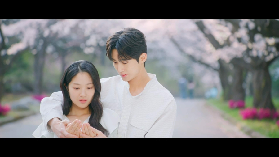 벚꽃길을 걷는 두 사람. 떨어지는 벚꽃 잎을 잡으면 소원이 이루어진다는 말에 열심히 벚꽃 잎을 잡던 솔이. 두 손을 펼치니 반지가 있습니다. 프러포즈 타이밍 잘 잡고 성공한 선재