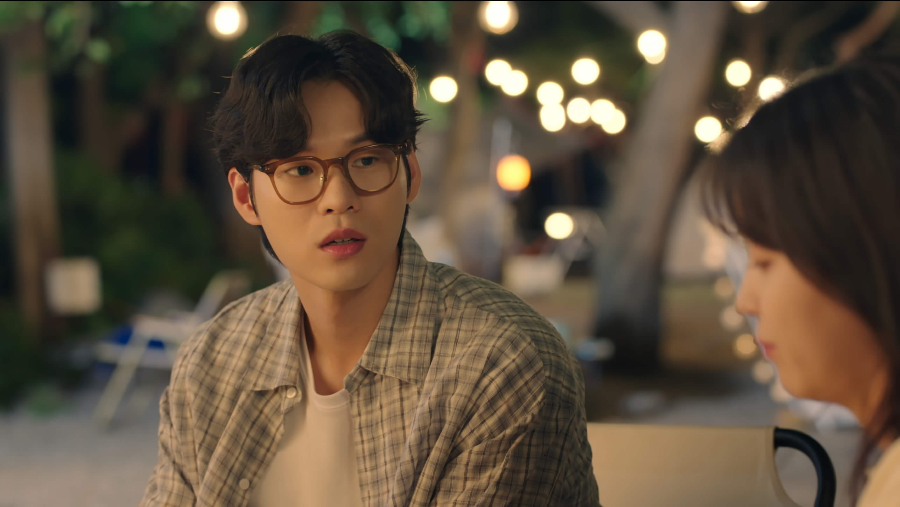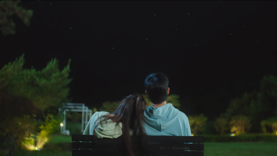명우가 잠든 후 숙소 앞 마당에 나와 편안하고 좋은 시간을 보내고 있는 두 사람. 승효는 석류에게 내일 같이 올라가자고 제안합니다.