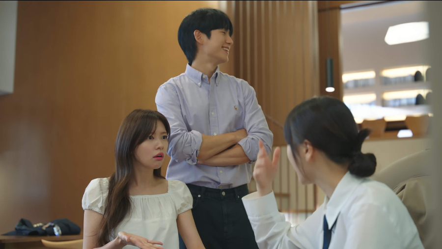 모음은 석류가 외박했다는 사실을 언급하며 둘이 사귀기로 한거냐고 직접 묻습니다. 이에 결국 그렇게 됐다고 실토하는 승효와 석류. 모음은 결국 둘이 이렇게 될 줄 알았다고 말합니다.