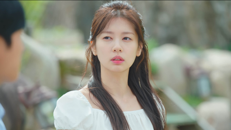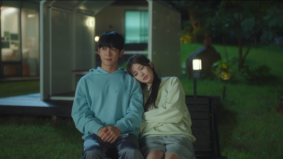 명우가 잠든 후 숙소 앞 마당에 나와 편안하고 좋은 시간을 보내고 있는 두 사람. 승효는 석류에게 내일 같이 올라가자고 제안합니다.