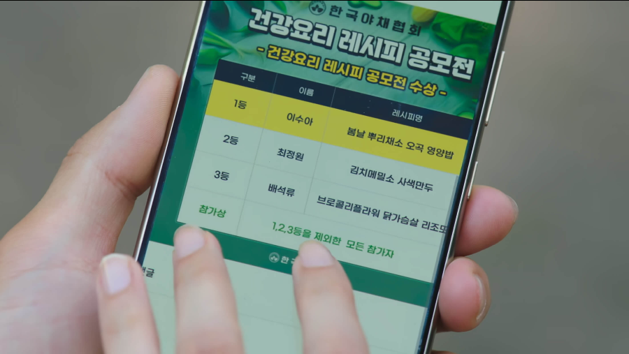 한국 야채 협회에서 열린 건강요리 레시피 공모전에 석류 몰래 석류의 레시피를 올린 승효. 석류의 레시피는 여기서 3등을 수상합니다. 이 소식을 석류에게 전달하는 승효