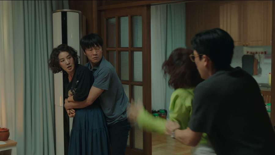 서로의 집에서 흥분한 채 남편한테 다시 서로를 욕하는 혜숙과 미숙. 이에 근식과 경종은 핸드폰으로 상황을 공유하면서 접선을 하기로 합니다.