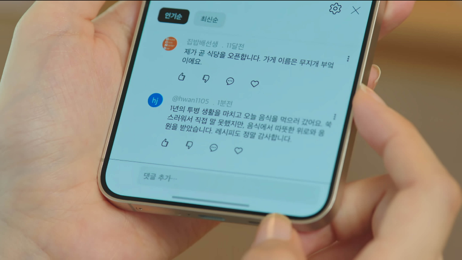 석류는 자신의 음식으로 따뜻한 위로와 응원을 받았다는 댓글을 보고 울컥합니다.