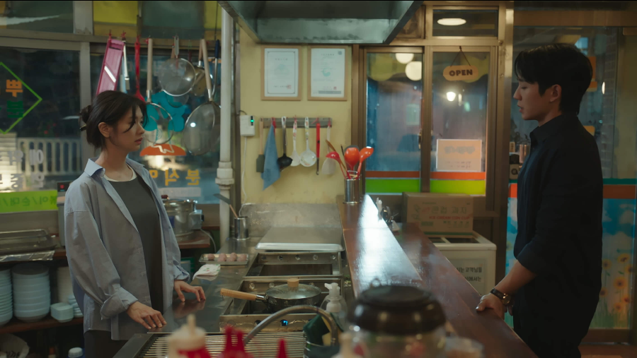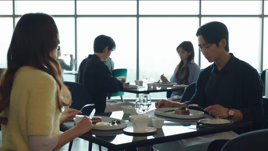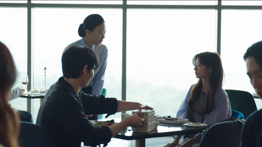밥을 먹으러 온 태희와 승효는 우연히 먼저 와서 밥을 먹고 있던 석류와 현준을 만납니다. 바로 옆테이블에 앉게 된 네 사람. 사각관계의 시작인 건가요?