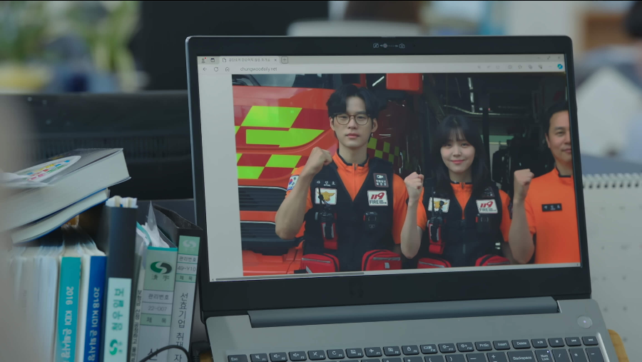 한편 단호는 구급대원들의 일상에 대한 기사를 게재하고 이에 많은 댓글들이 달립니다. 모음과 함께 찍은 사진을 뚫어져라 바라보고 있는 단호. 이에 질세라 모음도 기사 사진을 보며 30분 동안 계속 석류에게 단호 이야기를 합니다. 점점 더 서로를 생각하는 시간이 많아지고 있는 두 사람